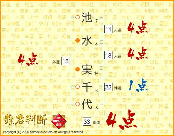 池(7画)水(4画) 実(14画)千(3画)代(5画)