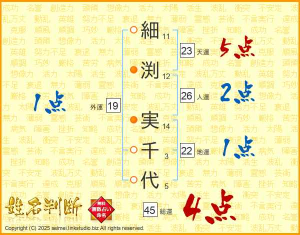 細(11画)渕(12画) 実(14画)千(3画)代(5画)