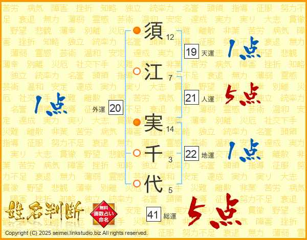 須江実千代さんの人運は21画の5点!