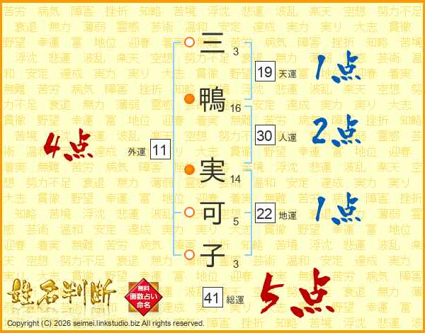 三鴨実可子さんの総運は41画の5点!