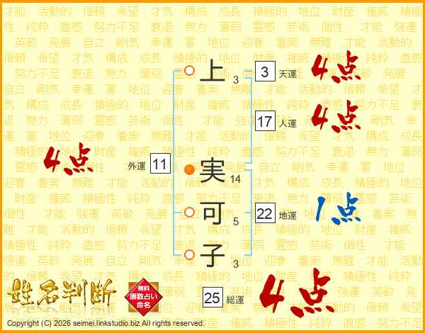 上(3画) 実(14画)可(5画)子(3画)