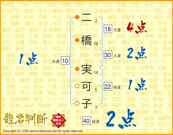 二(2画)橋(16画) 実(14画)可(5画)子(3画)