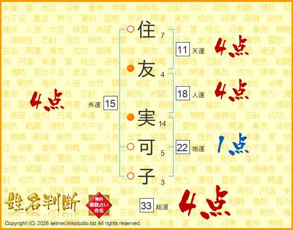 住(7画)友(4画) 実(14画)可(5画)子(3画)