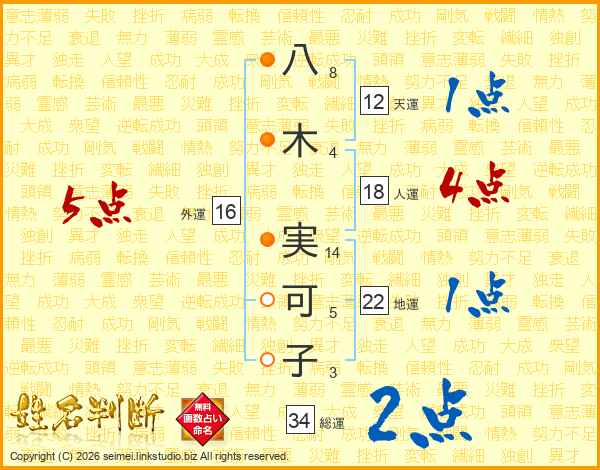 八(8画)木(4画) 実(14画)可(5画)子(3画)