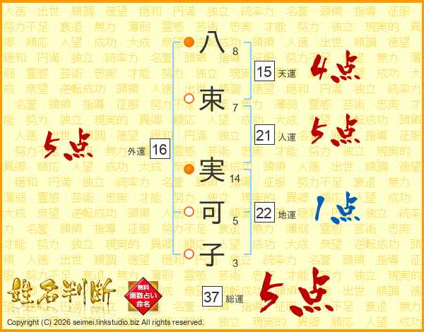 八(8画)束(7画) 実(14画)可(5画)子(3画)