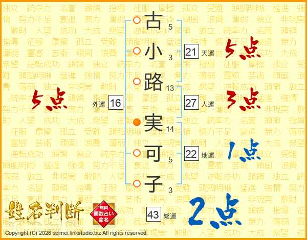 古小路実可子さんの外運は16画の5点!