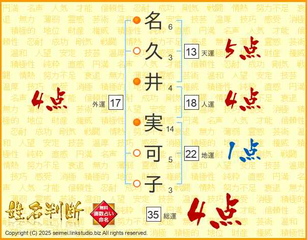 名(6画)久(3画)井(4画) 実(14画)可(5画)子(3画)