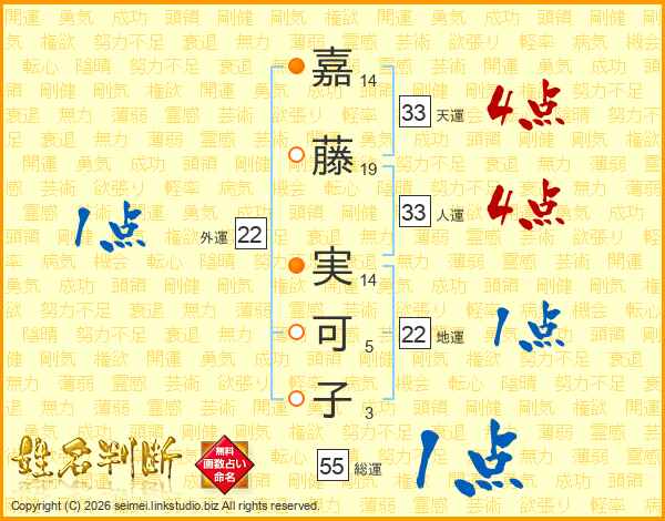 嘉藤実可子さんの総運は55画の1点!