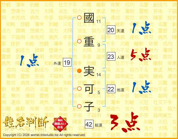 國(11画)重(9画) 実(14画)可(5画)子(3画)