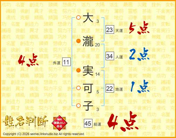 大瀧実可子さんの総運は45画の4点!