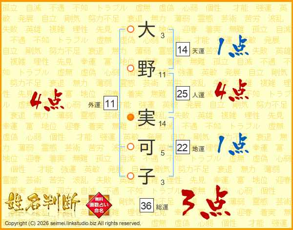 大野実可子さんの天運は14画の1点!