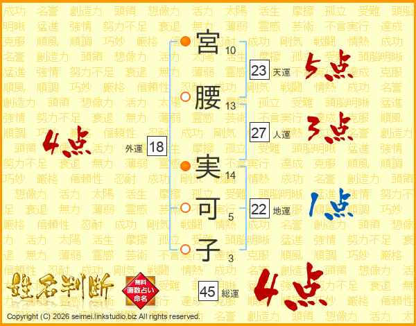宮腰実可子さんの総運は45画の4点!