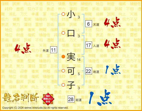 小(3画)口(3画) 実(14画)可(5画)子(3画)