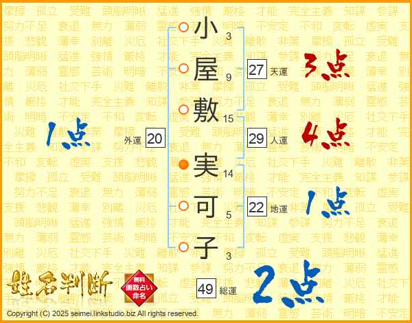 小屋敷実可子さんの総運は49画の2点!