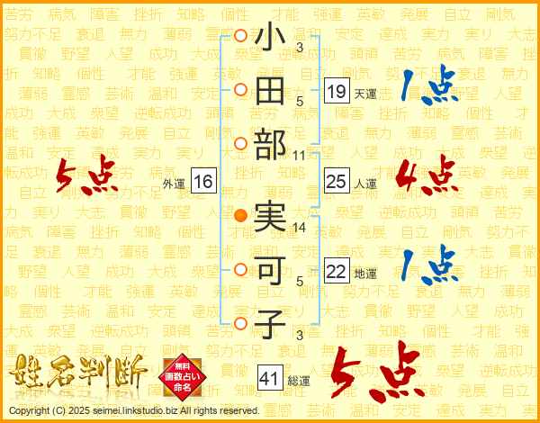 小(3画)田(5画)部(11画) 実(14画)可(5画)子(3画)