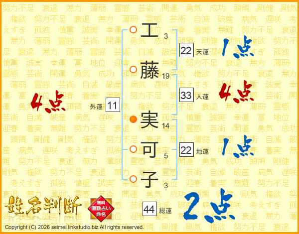 工藤実可子さんの総運は44画の2点!