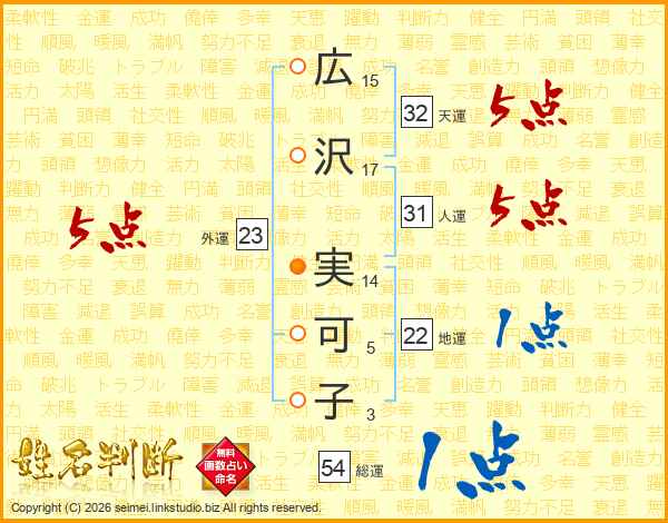 広沢実可子さんの総運は54画の1点!