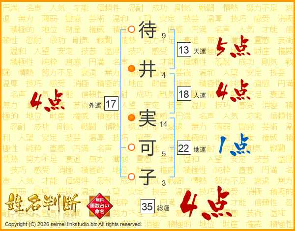 待井実可子さんの外運は17画の4点!