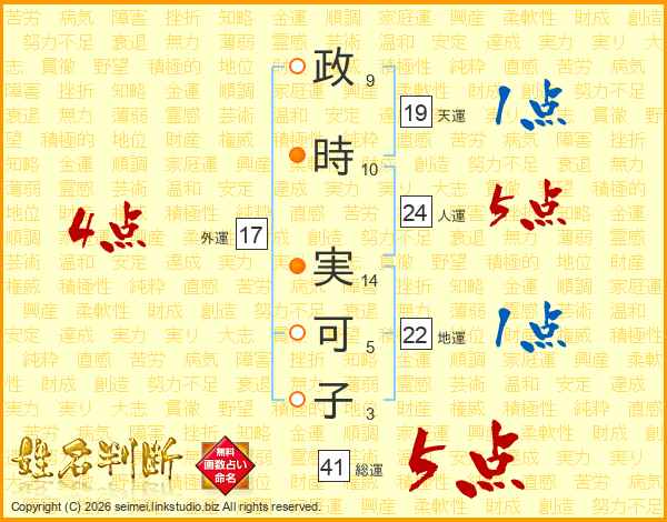 政時実可子さんの外運は17画の4点!