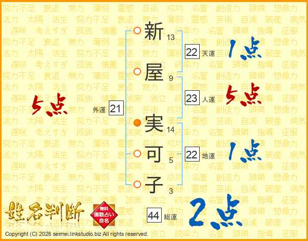 新屋実可子さんの総運は44画の2点!