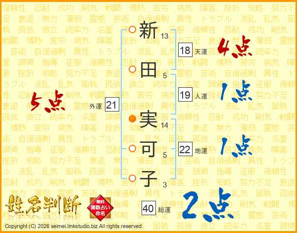 新田実可子さんの外運は21画の5点!