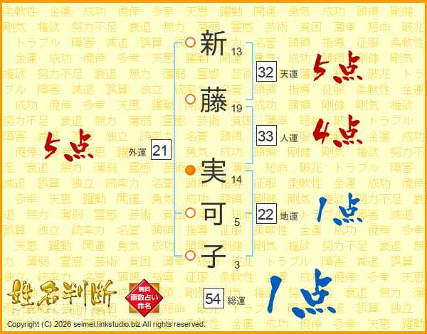 新(13画)藤(19画) 実(14画)可(5画)子(3画)