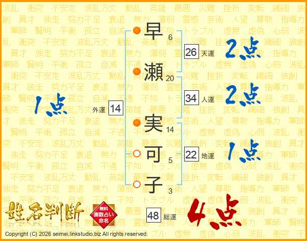 早瀬実可子さんの総運は48画の4点!
