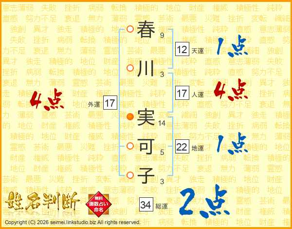 春川実可子さんの総運は34画の2点!
