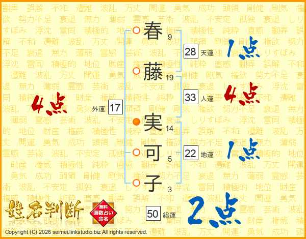 春藤実可子さんの総運は50画の2点!