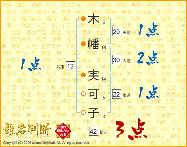 木(4画)幡(16画) 実(14画)可(5画)子(3画)