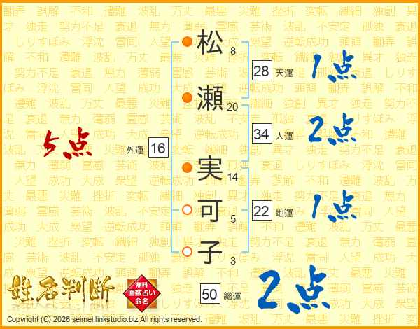 松瀬実可子さんの総運は50画の2点!