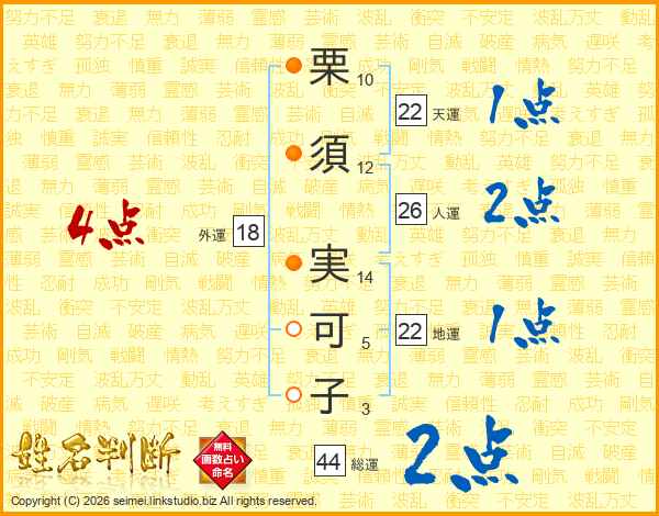 栗(10画)須(12画) 実(14画)可(5画)子(3画)