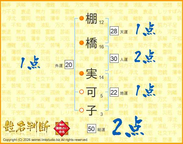 棚橋実可子さんの総運は50画の2点!