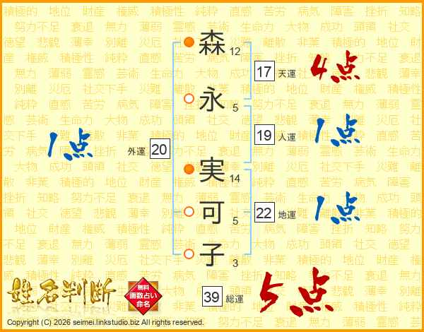 森(12画)永(5画) 実(14画)可(5画)子(3画)