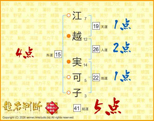 江越実可子さんの外運は15画の4点!