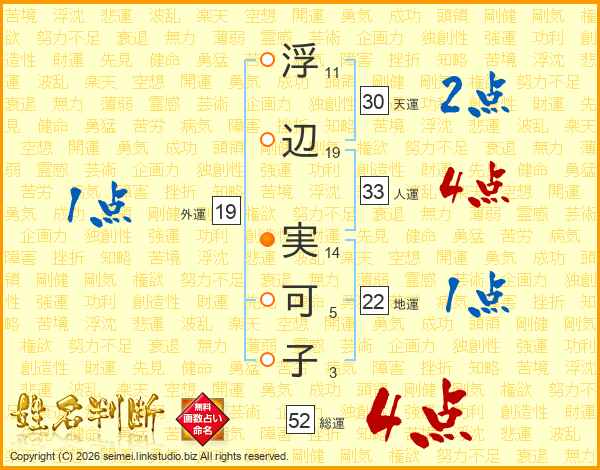 浮辺実可子さんの総運は52画の4点!