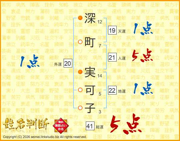 深(12画)町(7画) 実(14画)可(5画)子(3画)