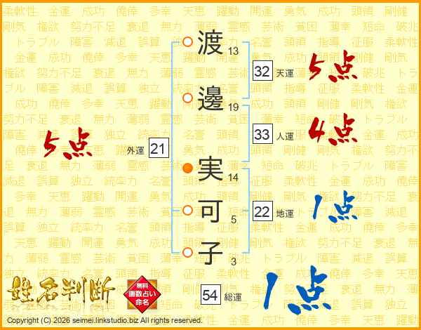 渡(13画)邊(19画) 実(14画)可(5画)子(3画)