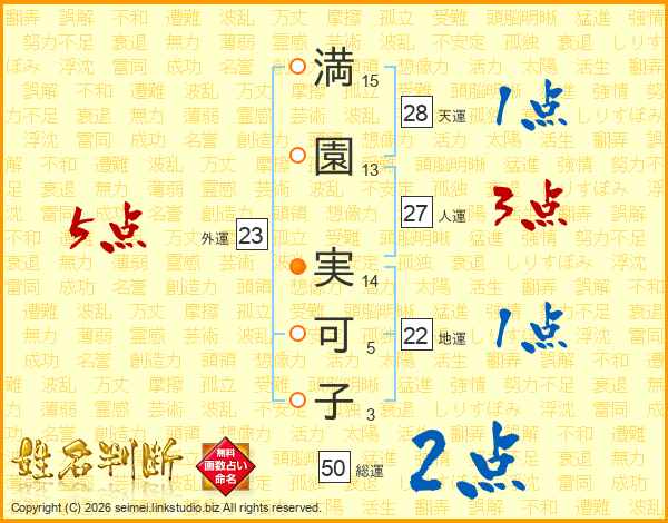 満(15画)園(13画) 実(14画)可(5画)子(3画)