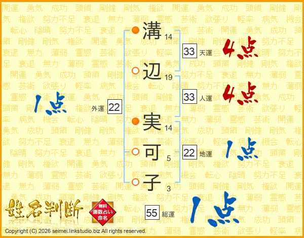 溝辺実可子さんの天運は33画の4点!