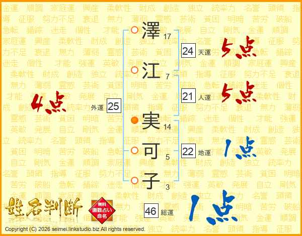 澤江実可子さんの総運は46画の1点!