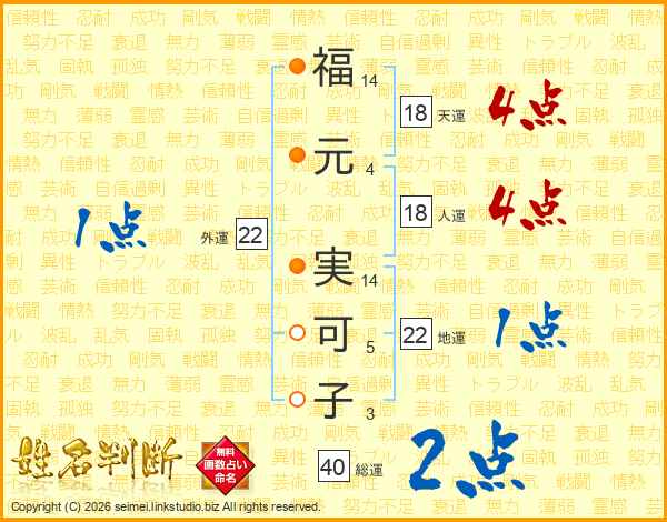 福(14画)元(4画) 実(14画)可(5画)子(3画)