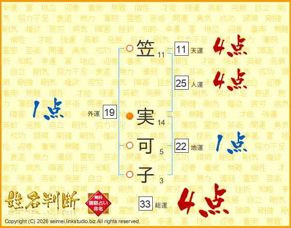 笠実可子さんの総運は33画の4点!