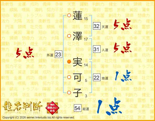 蓮澤実可子さんの総運は54画の1点!