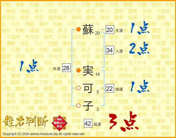 蘇(20画) 実(14画)可(5画)子(3画)