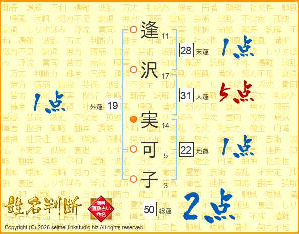 逢沢実可子さんの外運は19画の1点!