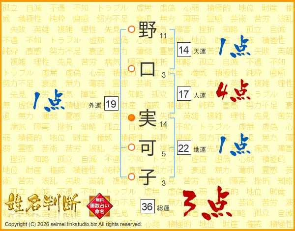 野口実可子さんの人運は17画の4点!