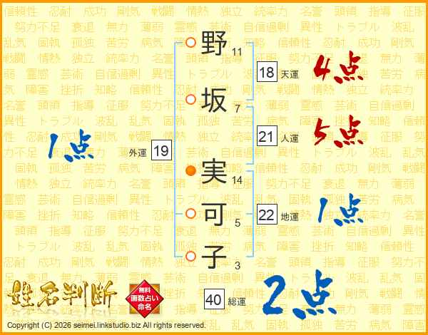 野坂実可子さんの人運は21画の5点!