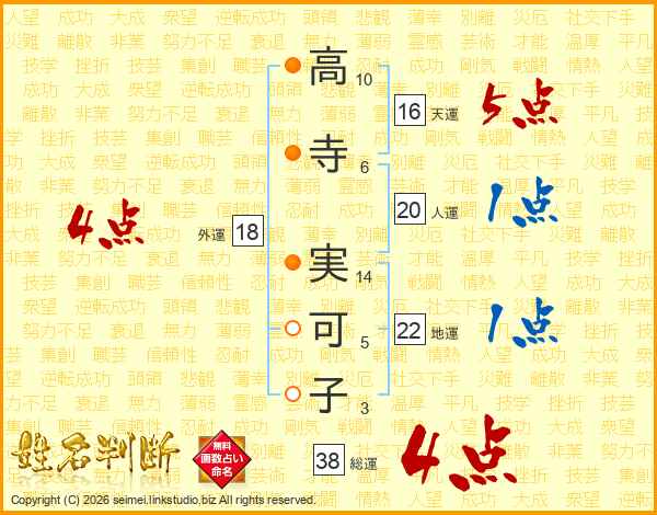 高(10画)寺(6画) 実(14画)可(5画)子(3画)