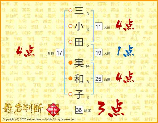三小田実和子さんの地運は25画の4点!